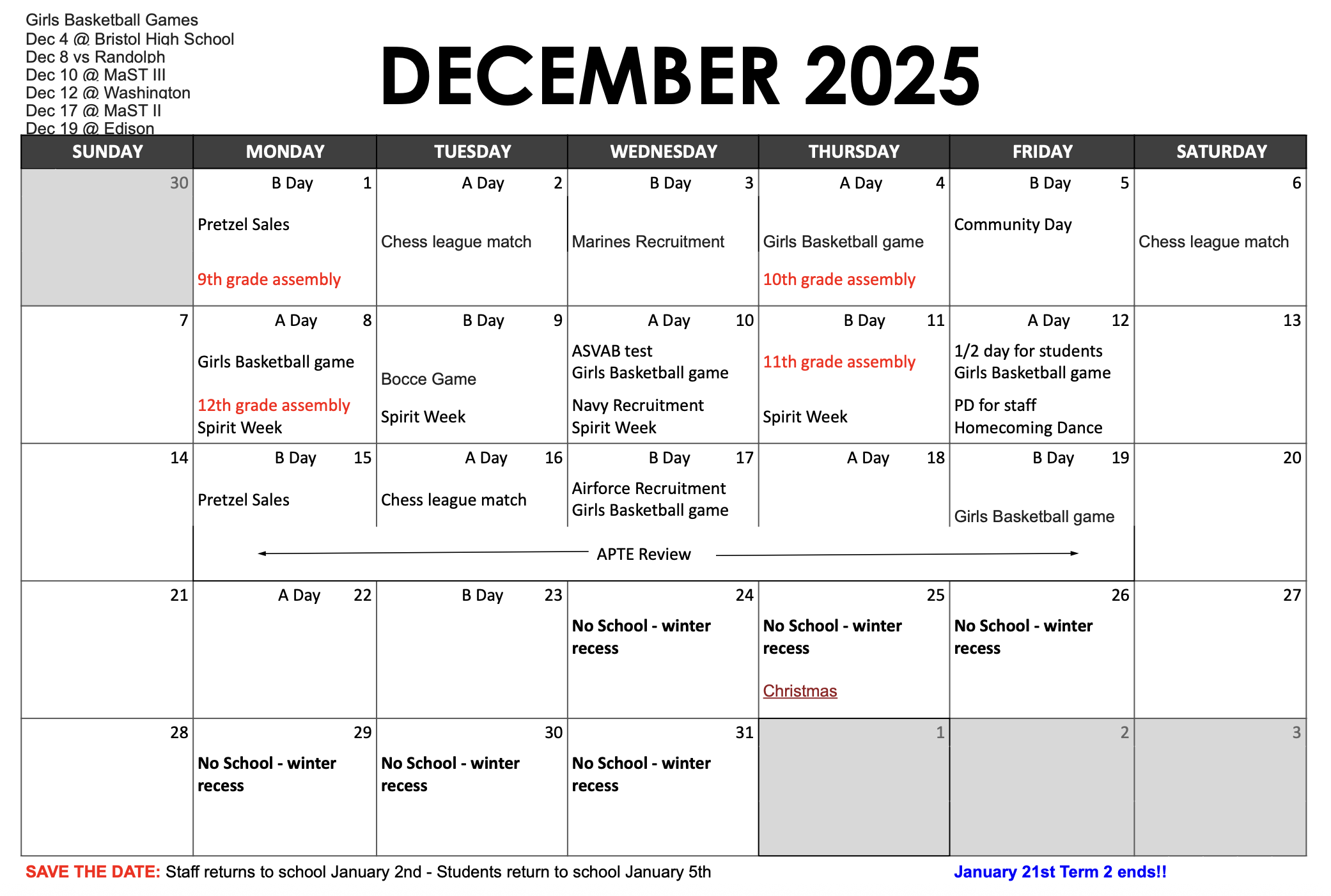 Calendar & Bell Schedule